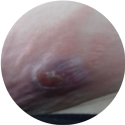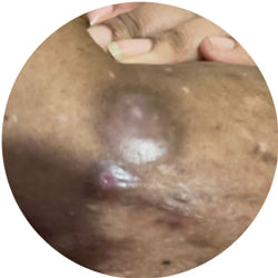 Hidradenitis Suppurativa (HS) is a debilitating, chronic, complex inflammatory illness which presents with extremely painful recurring boil-like abscesses. These abscesses may start out as pustules (small, pus filled bumps/sores) that can develop anywhere hair follicles are found.