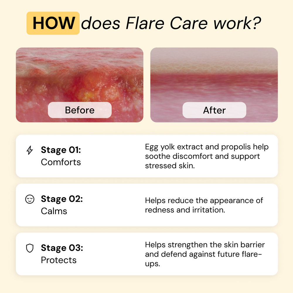 Universal Flare Care works to restore the skin barrier and protects against flare-ups.