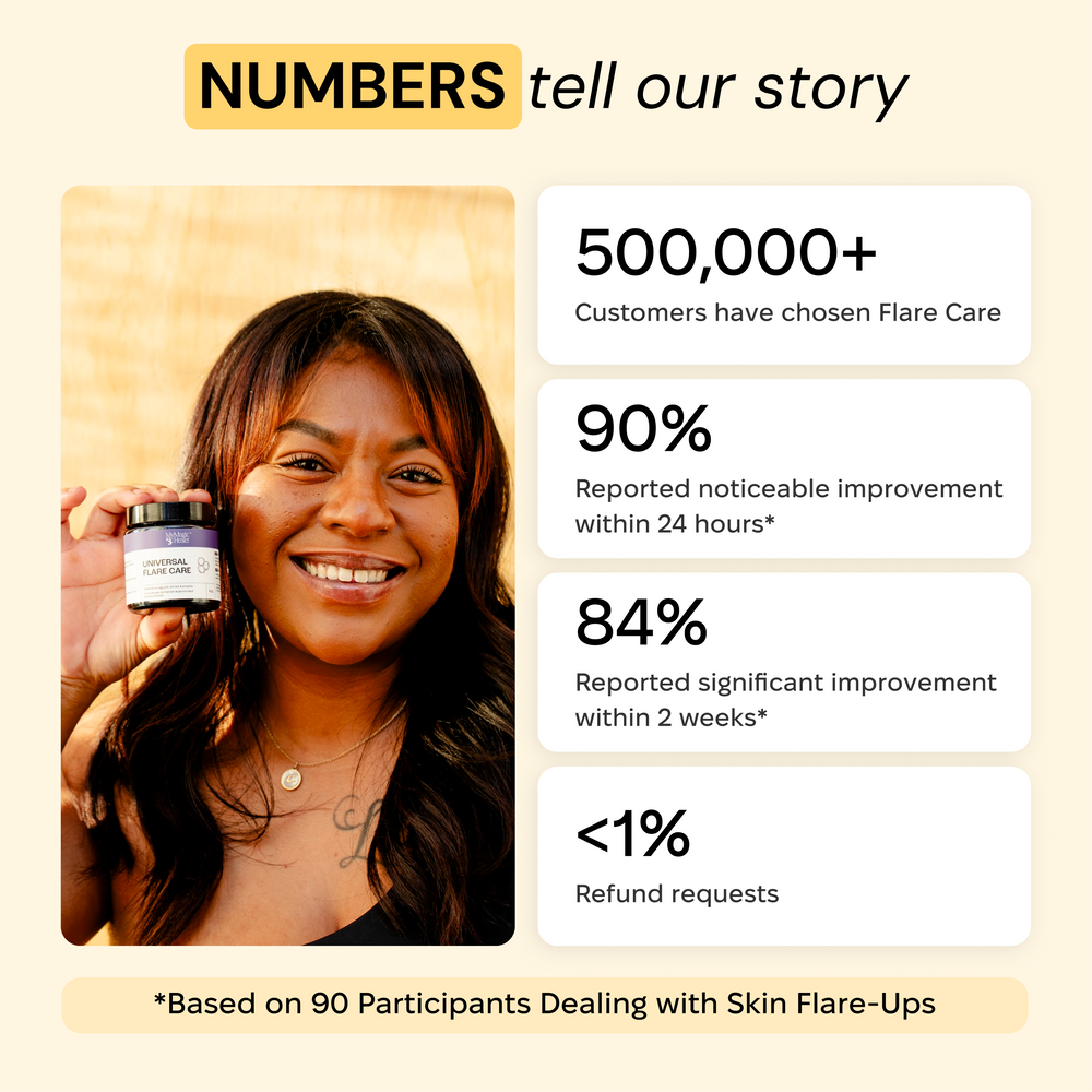 We know the healing power of Universal Flare Care—and we want you to feel just as confident. That’s why we offer a 100% money-back guarantee on our single 4oz Universal Flare Care for 30 days from the day you receive your order.